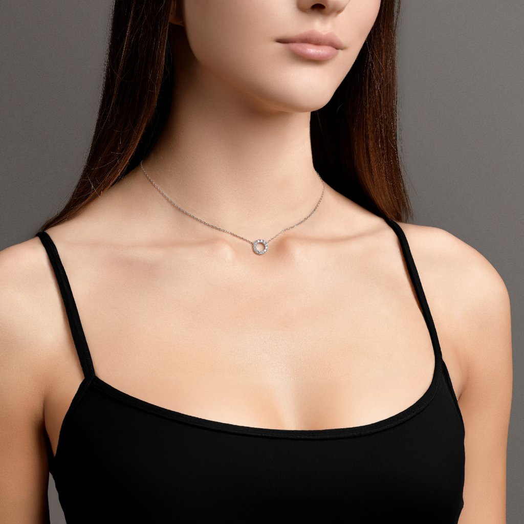 Objevte šperk, který upoutá každý pohled. Řetízek Circle Max přináší zvětšený přívěsek kruhu, osázený více třpytivými kameny, pro ještě výraznější a luxusní vzhled.